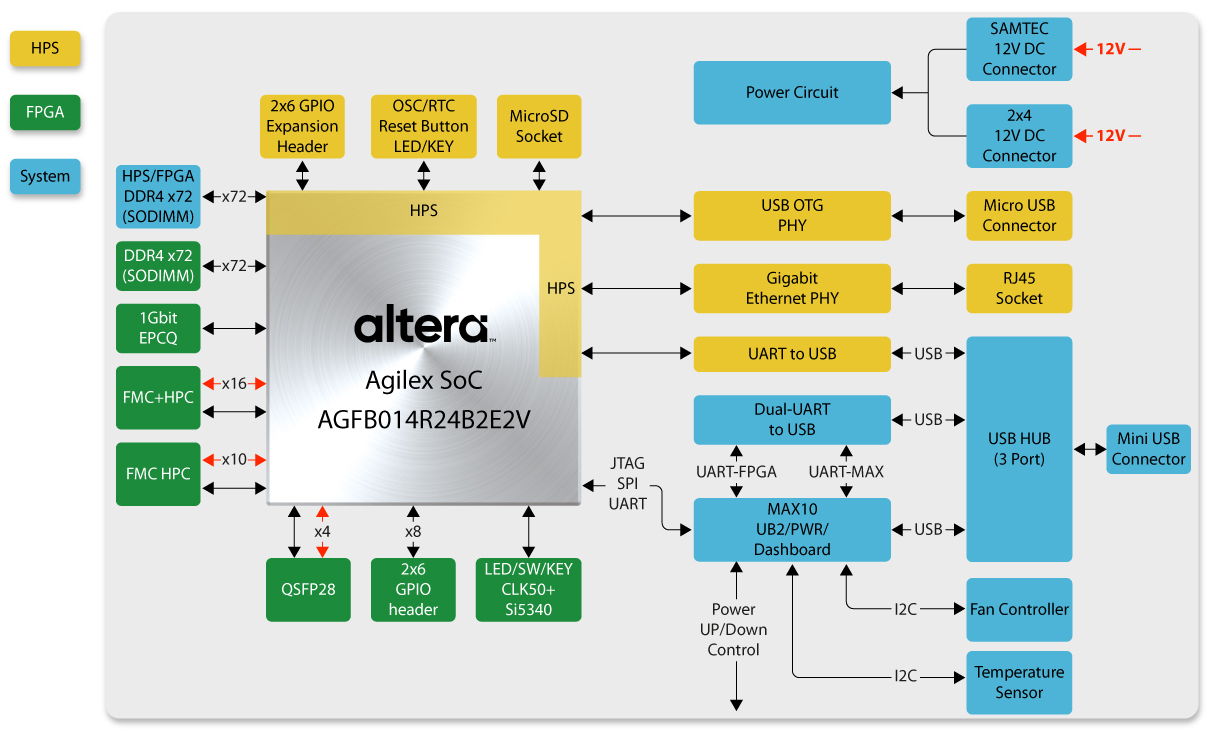 - FPGA: Agilex AGFB014R24B2E2V (1400K LEs)