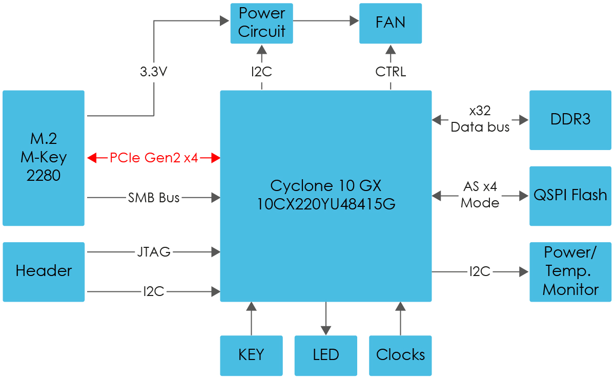 - FPGA: Cyclone 10 GX 10CX220YU484I5G